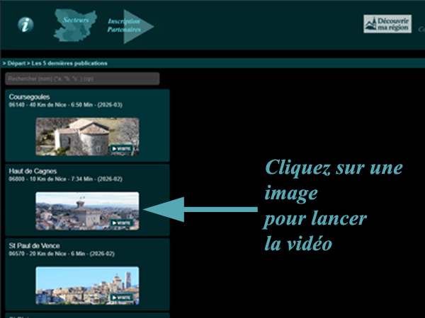 🔵 - Rechercher par mots-clés Pour faire une recherche par mot cles vous devez auparavant aller dans le secteur "Alpes-Maritimes toutes les vidéos disponibles" (1er onglet de la liste).